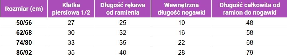 Tabela rozmiarów Geggamoja Kombinezon polarowy