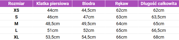 Tabela rozmiarów Merino365 Damska koszulka z długim rękawem