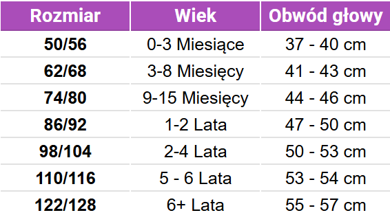 Tabela rozmiarów Mikk-line Kominiarki