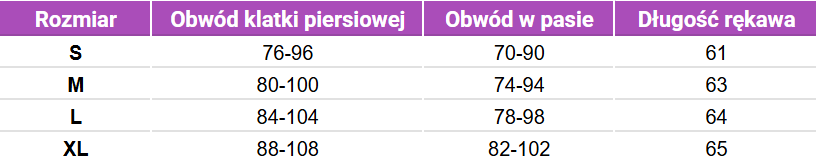 Tabela rozmiarów SAFA KATRINE damskiej koszulki