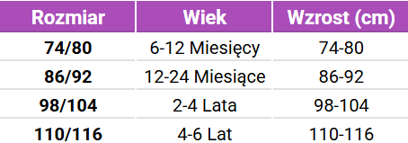 Tabela rozmiarów Sterntaler Koszulka kąpielowa UV z krótkim rękawem